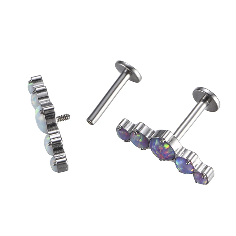 ASTM F136 титановый комплект зубцов с внутренней резьбой, Опаловый кластер для губ, гвоздики, завитка ушной раковины, пирсинг для тела, ювелирные изделия