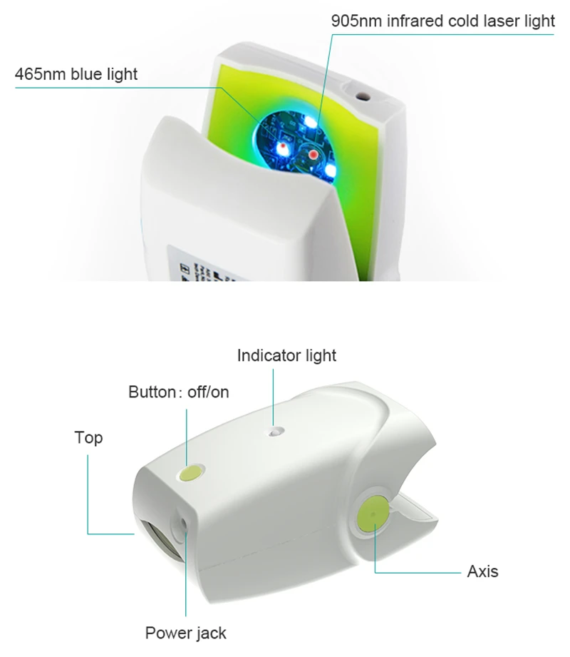1.) 1 * 905nm лазер и 3 * 470nm синий свет для лечения грибковых инфекций ногтей.2.) Встроенный литий-ионный аккумулятор емкостью 1200 мАч.3.) неинвазивное лечение, отсутствие побочных эффектов, безболезненное.4.) мини-размер, красивый внешний вид, портативный в любое время в любом месте.5.) компактный и портативный для доставки, интерфейс работы очень дружелюбный.6.) неинвазивное лечение, отсутствие побочных эффектов, безболезненное.7.) ФИЗИОТЕРАПЕВТИЧЕСКИЙ эффект подтвержден клиническим испытанием и абсолютно безопасен.8.) доступны практичные Бесплатные детали.Производительность:Длина волны лазера: 90 нмСиний светильник Длина волны: 470нмИнтенсивность лазера: 25 ВтМаксимальная интенсивность импульса: 22 ВтОборудование класса II: Тип BТип лазера: 1 мНапряжение: 5 ВНоминальная мощность: 5 В постоянного тока Макс: 0,5aВремя зарядки: 2-3 часаВход: 100-240V/ 50/60Hz 0.2AПродолжительность лечения может варьироваться в зависимости от таких переменных, как возраст, тяжесть инфекций и т. д.Предполагаемая продолжительность лечения составляет около 3-6 месяцев.