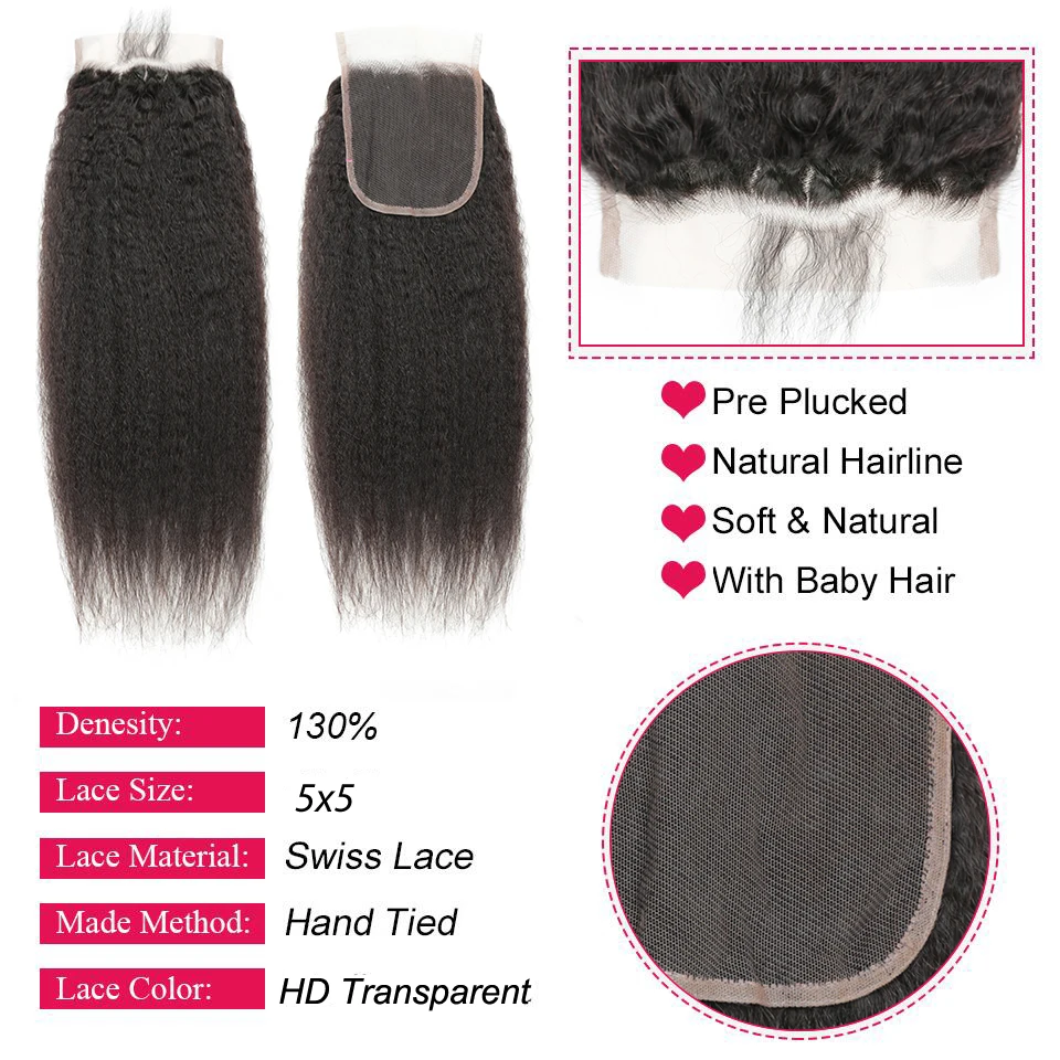 Кудрявые прямые пучки волос с 5 Х5 HD кружевной застежкой, накладные человеческие волосы Yaki, бразильские пупряди волос с фронтальным переплетением