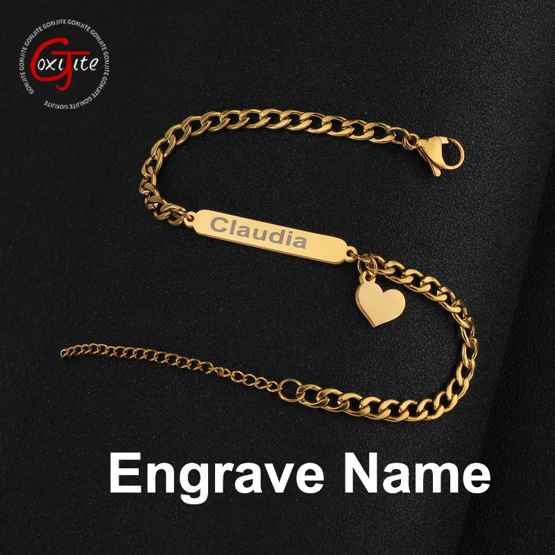 Браслет Goxijite с именной гравировкой для женщин, браслет из нержа...