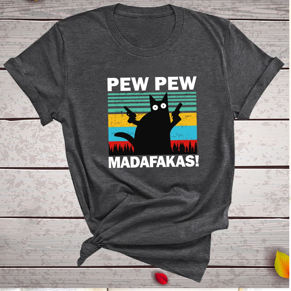 Женские футболки с принтом Pew Madafakas, летние футболки с графическим принтом 2020, Забавные Рубашки для женщин, свободные топы с круглым вырезом в стиле Харадзюку,