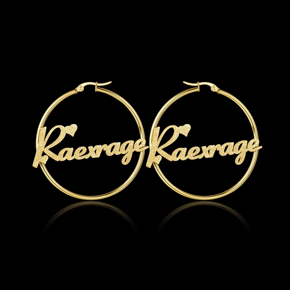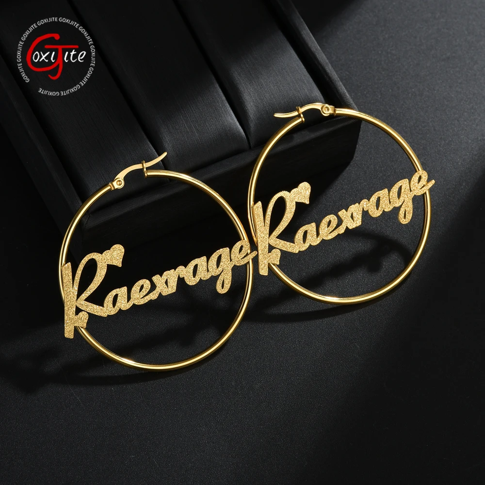 Goxijite индивидуальные матовые большие серьги-кольца с именем, женские серьги из нержавеющей стали с персонализированными буквами, именной табличкой, круглые серьги, ювелирные изделия в подарок