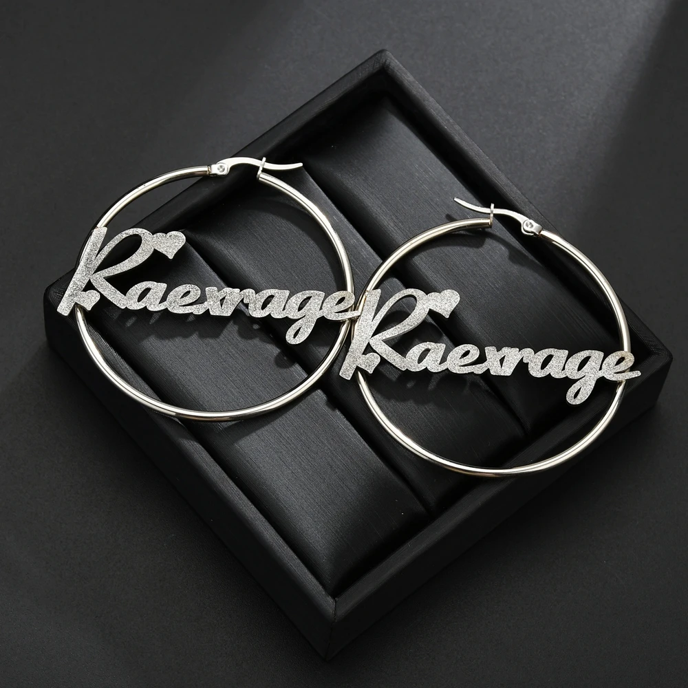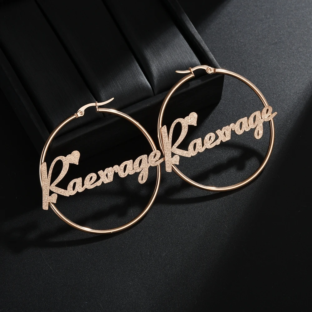 Название:Goxijite, на заказ, матовое название, большой обруч, женские серьги, нержавеющая сталь, персонализированная надпись, именная табличка, круглые серьги, ювелирное изделие, подарок
