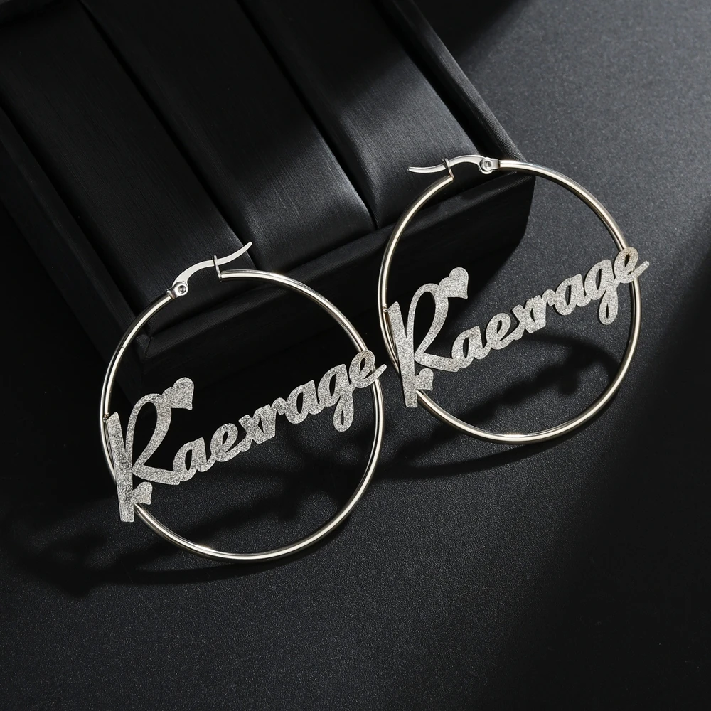 featureCustom Frosted Name Big Hoop Earring, Circle Earrings