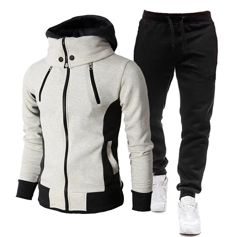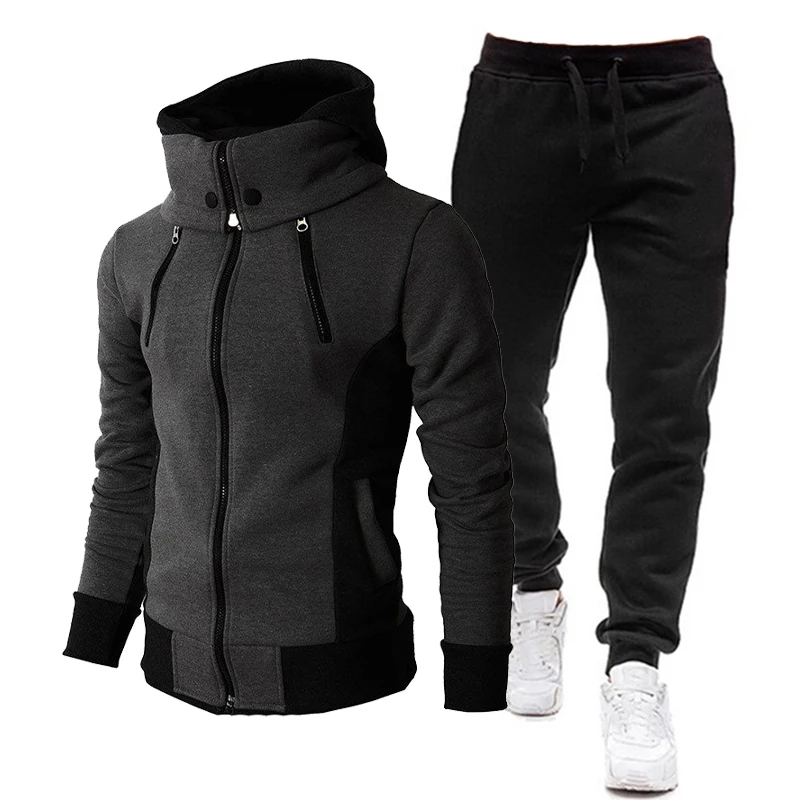 Новинка, мужские Модные костюмы для бега на молнии, толстовка + штаны, спортивные костюмы, комплект одежды для бега