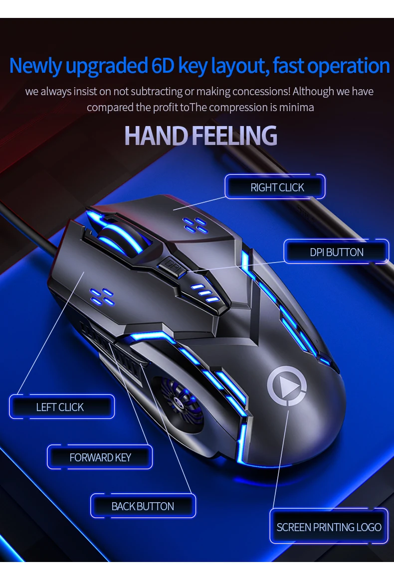 USB-мышь компьютерная игровая проводная, 6 кнопок, 6 кнопок