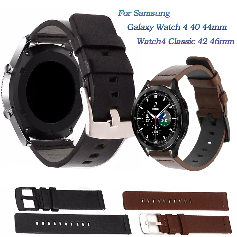 Ремешок из натуральной кожи для наручных часов, браслет для Samsung Galaxy Watch 4 Classic 42 46 мм, Galaxy Watch 4 Active 2 40 44 мм, 20 мм