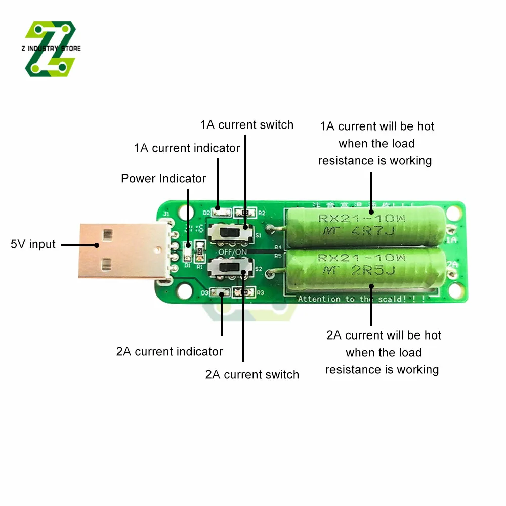 Usb-разъем подключен к выходному интерфейсу 5 В. Из-за значения сопротивления и максимального предела мощности резистора, он не может быть подключен к интерфейсу быстрой зарядки выше 5 В.