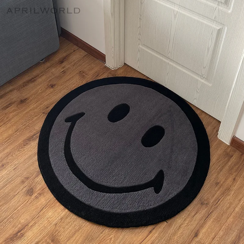 Круглый декоративный ковер со смайликом для гостиной, Детский напольный коврик для украшения комнаты, пушистый коврик, коврик для ванной, домашний ковер
