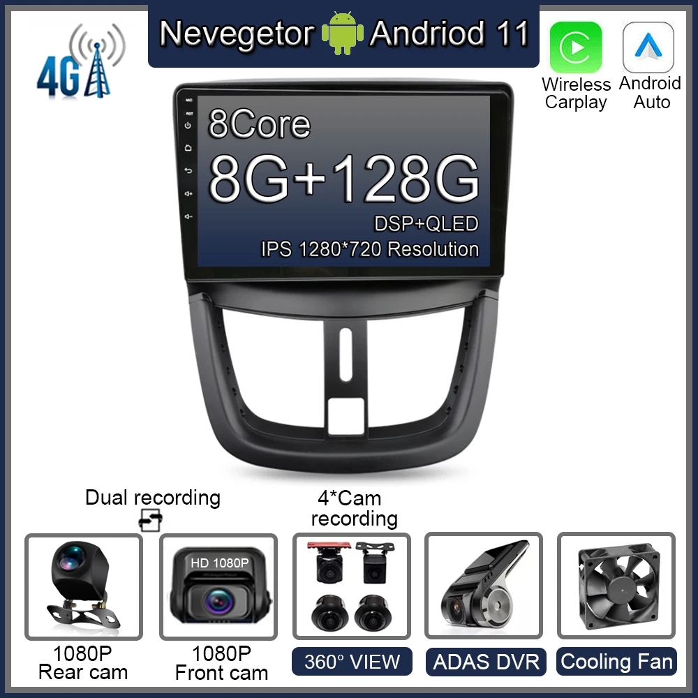 Автомагнитола 2 Din для Peugeot, мультимедийный проигрыватель на Android 11 с GPS, видеоплеером, 8 + 128 ГГц, для Peugeot 207, 2006-2015, типоразмер 2 Din