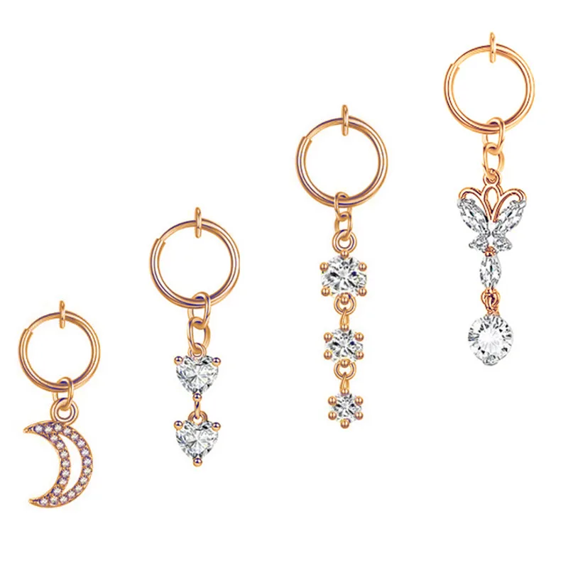 4 шт.компл. набор колец с бабочками искусственное кольцо-пирсинг для пупка Лот пупка не пирсинг Кольцо клипса пупка