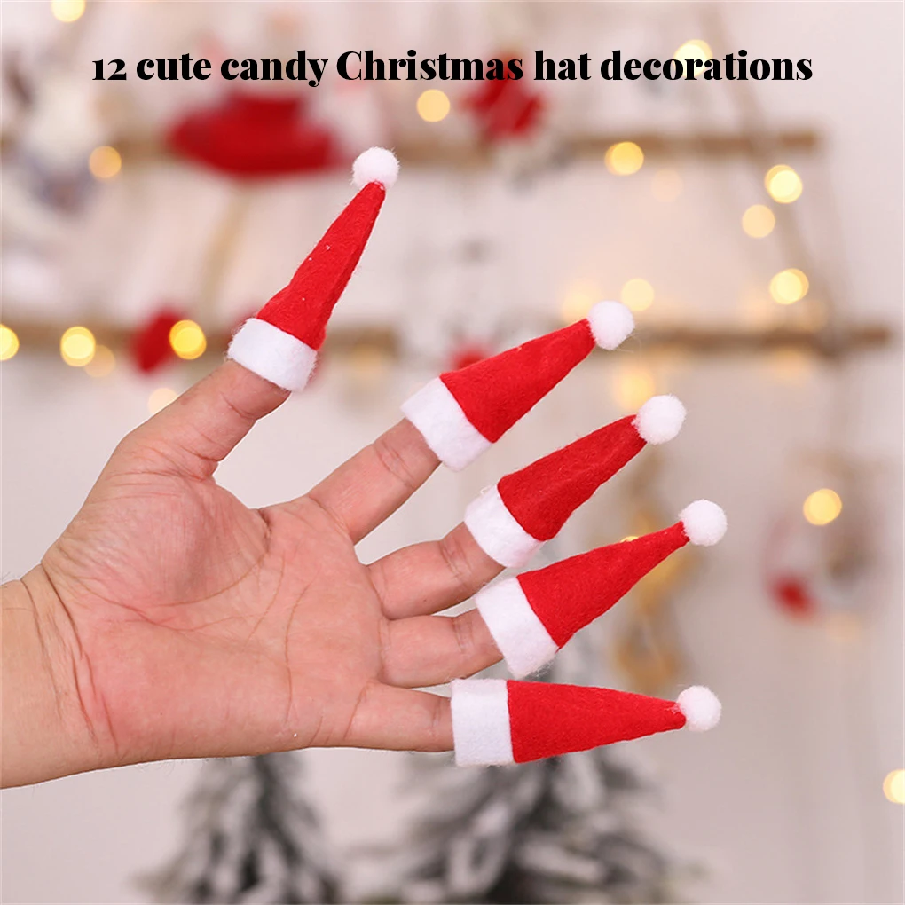 12 шт. маленькие рождественские конфетные шляпы с держателем Клауса...