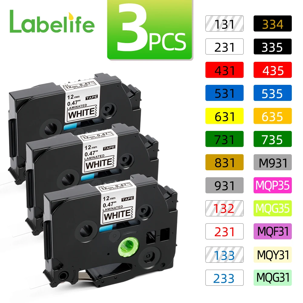 3PK 231 лента для этикеток, совместимая с маркером Brother, ламинированная лента 12 мм, черно-белая для этикеток Brother 231 241 251 HSE231