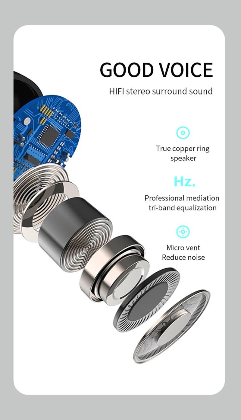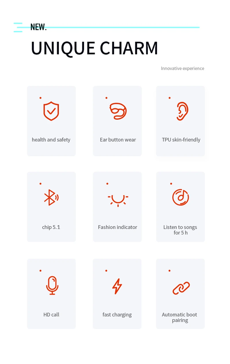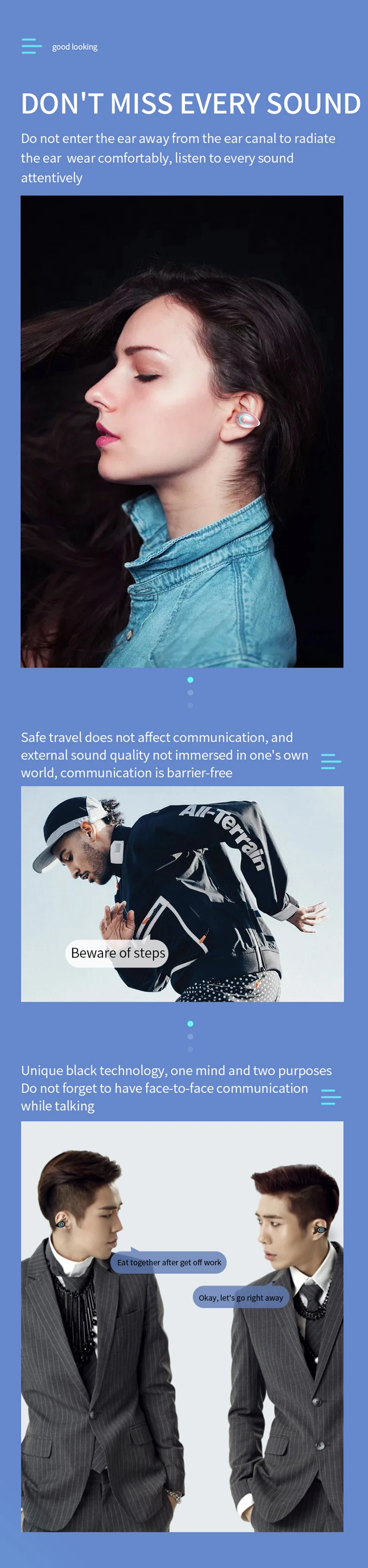 -Функция TWS: Поддержка двух гарнитур для подключения друг к другу и одновременного использования.-Мини-Беспроводная невидимая конструкция.-Супер Мини-размер и спрятан в ушах, без нагрузки на ношение.-Эргономичный дизайн наушников обеспечивает стабильность наушников в ушах, хорошо подходит для вождения, спорта, бизнеса и отдыха.-Bluetooth-Совместимость с операционными V5.1 + EDR беспроводной сигнал с 10-метрового диапазона.-Глубокий микрофон с шумоподавлением DPS обеспечивает четкий голос.-Голосовая Подсказка для сопряжения, вызова, включения/выключения.-Одна Многофункциональная кнопка для включения/выключения, переключения песен, переключения языков, ответа/снижения вызовов.