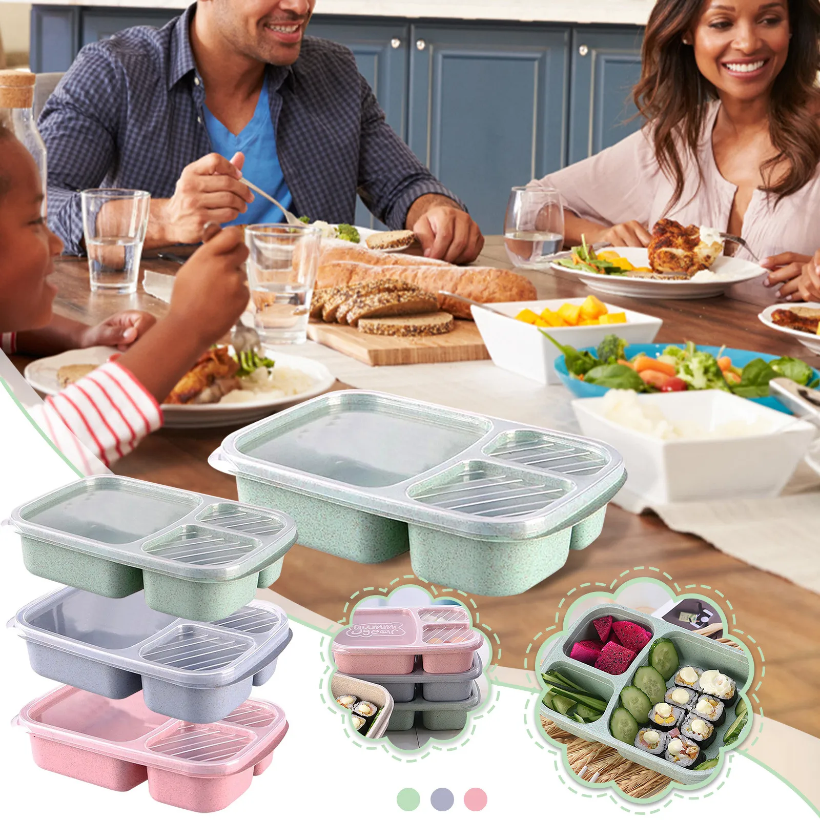 2021 коробка для ланча, многоразовый пластиковый контейнер с 3 отделениями для хранения пищи, коробки для студентов, рабочих, портативная посуда для улицы