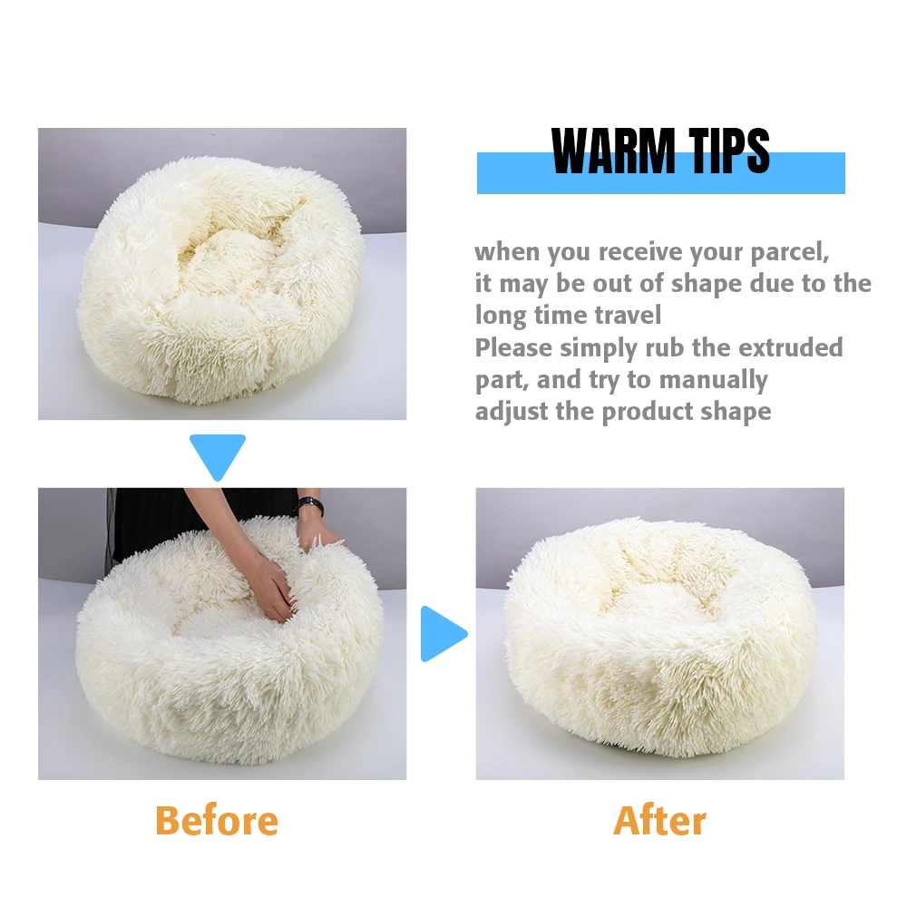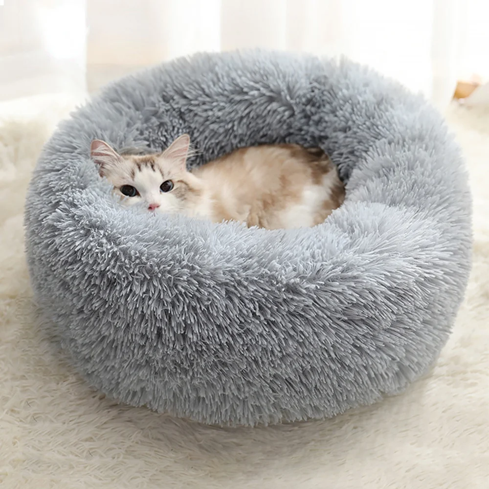 Круглые плюшевые кровати для кошек, мягкие длинные плюшевые кровати...