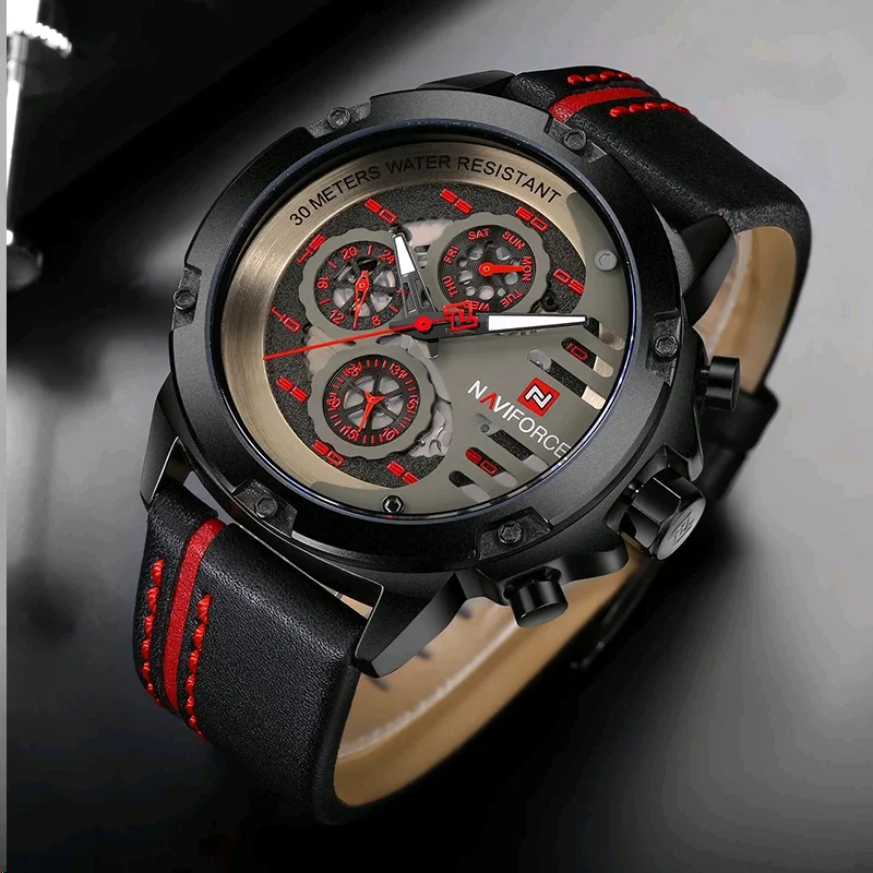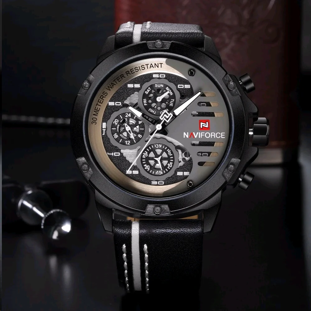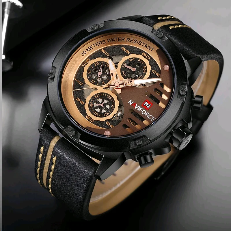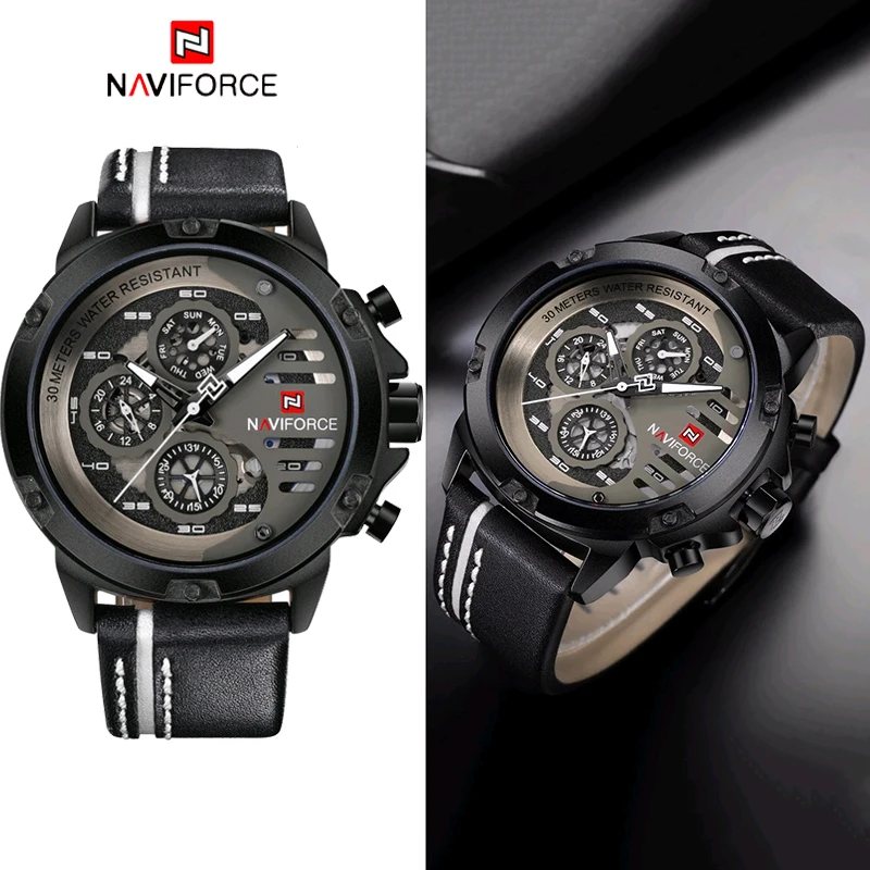 Часы наручные NAVIFORCE мужские с ремешком из натуральной кожи, модные деловые Роскошные армейские водонепроницаемые спортивные