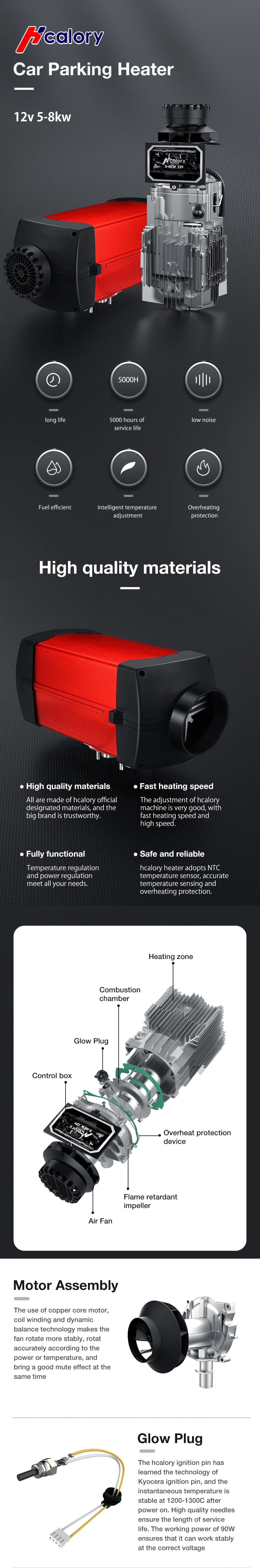 Автомобильный обогреватель Hcalory, 5-8 кВт, 12 В, воздушный дизельный Обогреватель, парковочный обогреватель с пультом дистанционного управления, ЖК-монитор для RV, дома на колесах, грузовиков, лодок
