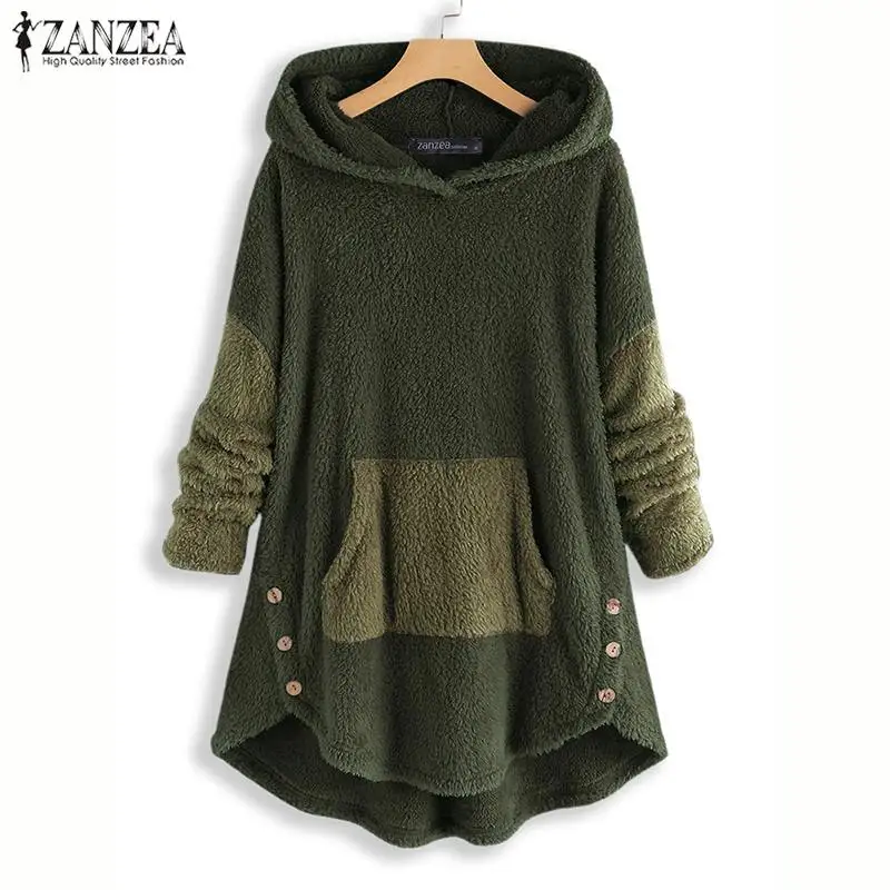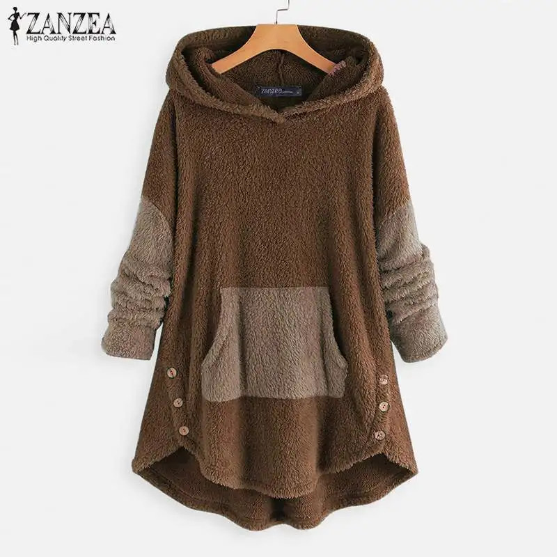 2021 ZANZEA женские толстовки с капюшоном, пушистые пальто, модные ...
