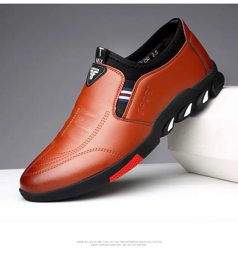 Дышащие однотонные слипоны из натуральной кожи, Мужская обувь для в...