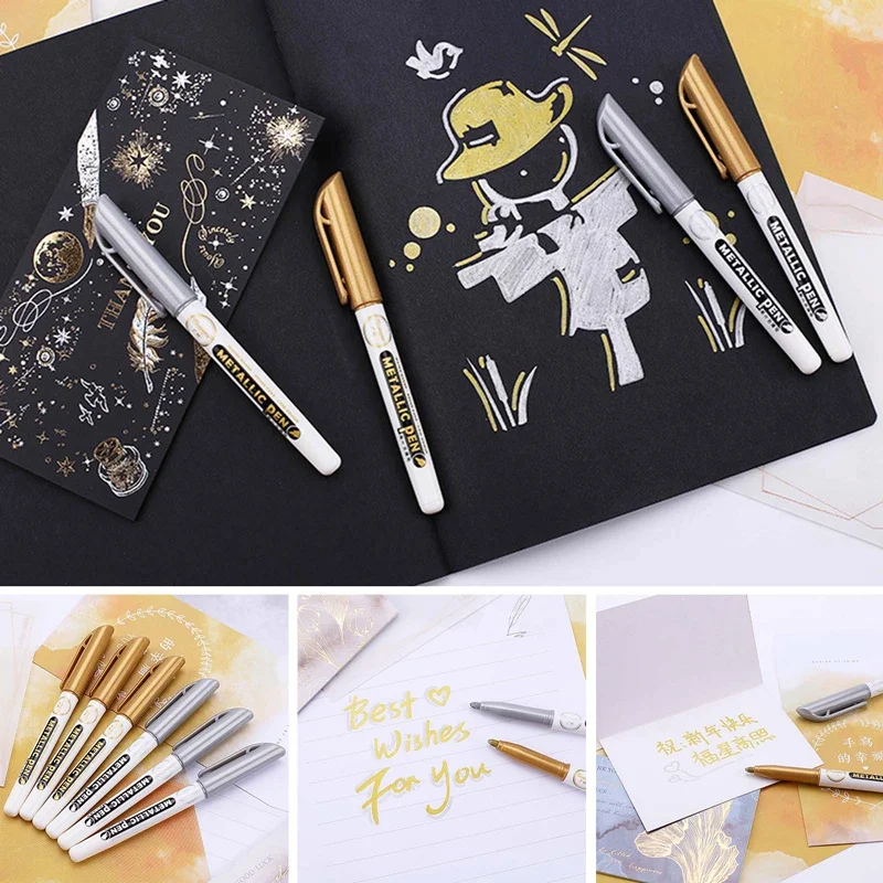 Ручка для рисования золотистого и серебристого цвета, Перманентный ...