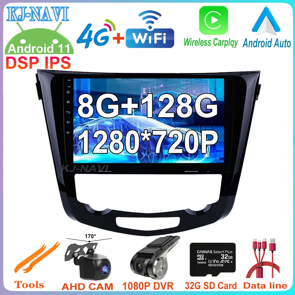 Автомобильный плеер с IPS экраном Android 11,0 1280*720P, радио, мультимедийный GPS-видеоплеер для Nissan X-TRAIL X Trail T32 Qashqai 2 J11 2013 - 2017