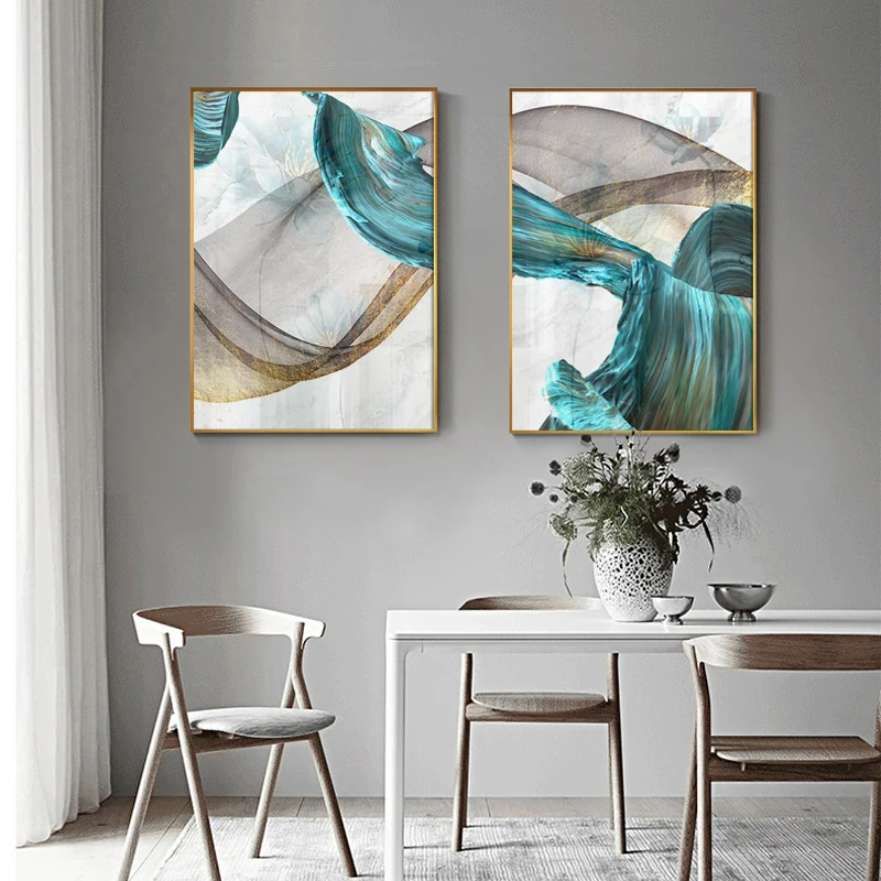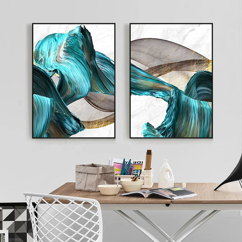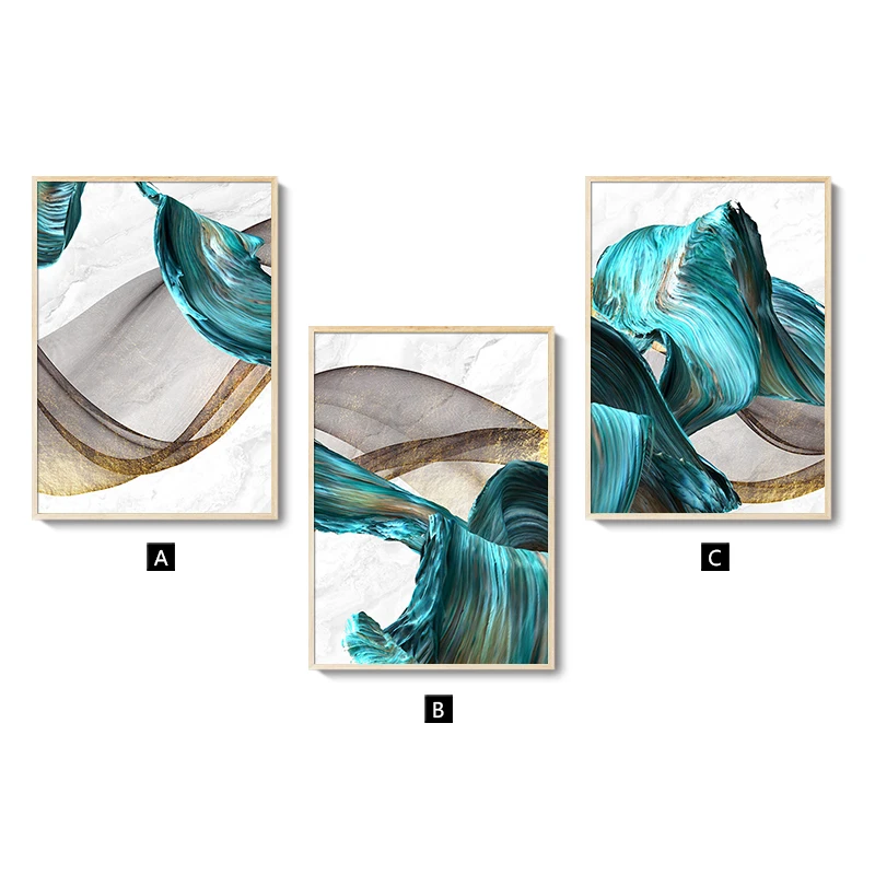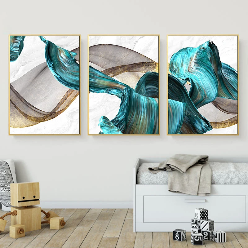 Акварельный постер, роскошная Картина на холсте, зеленая Золотая лента, Современная Настенная картина, домашняя декоративная картина для гостиной, Триптих
