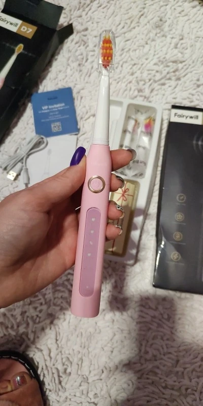Очень доволен статьей, которая действительно практична, а также красива и полностью соответствует фотографиям и описанию. Он не ломается, но вибрирует на большой скорости, поэтому хорошо очищает зубы. Отличная цена и отличное соотношение цены и качества. Груз прибыл на следующий день после заказа, отлично упакован и защищен и в оригинальной коробке, поэтому он прибыл в целости и сохранности, я был очень доволен покупкой.
