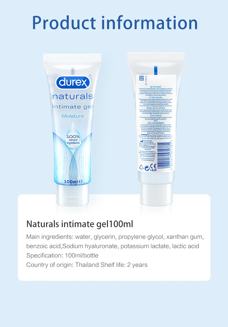 Лубрикант Durex NEW Naturals с гиалуроновой кислотой, лубрикант на водной основе для взрослых, интимное масло для вагинального, анального, геев, легкое в уходе 100 мл