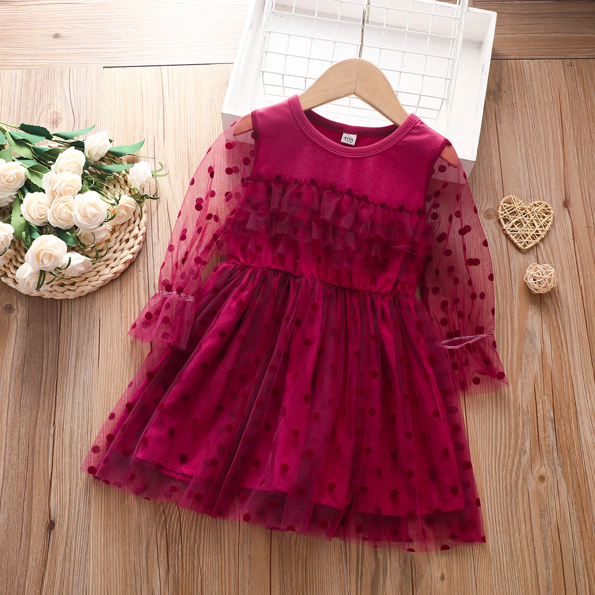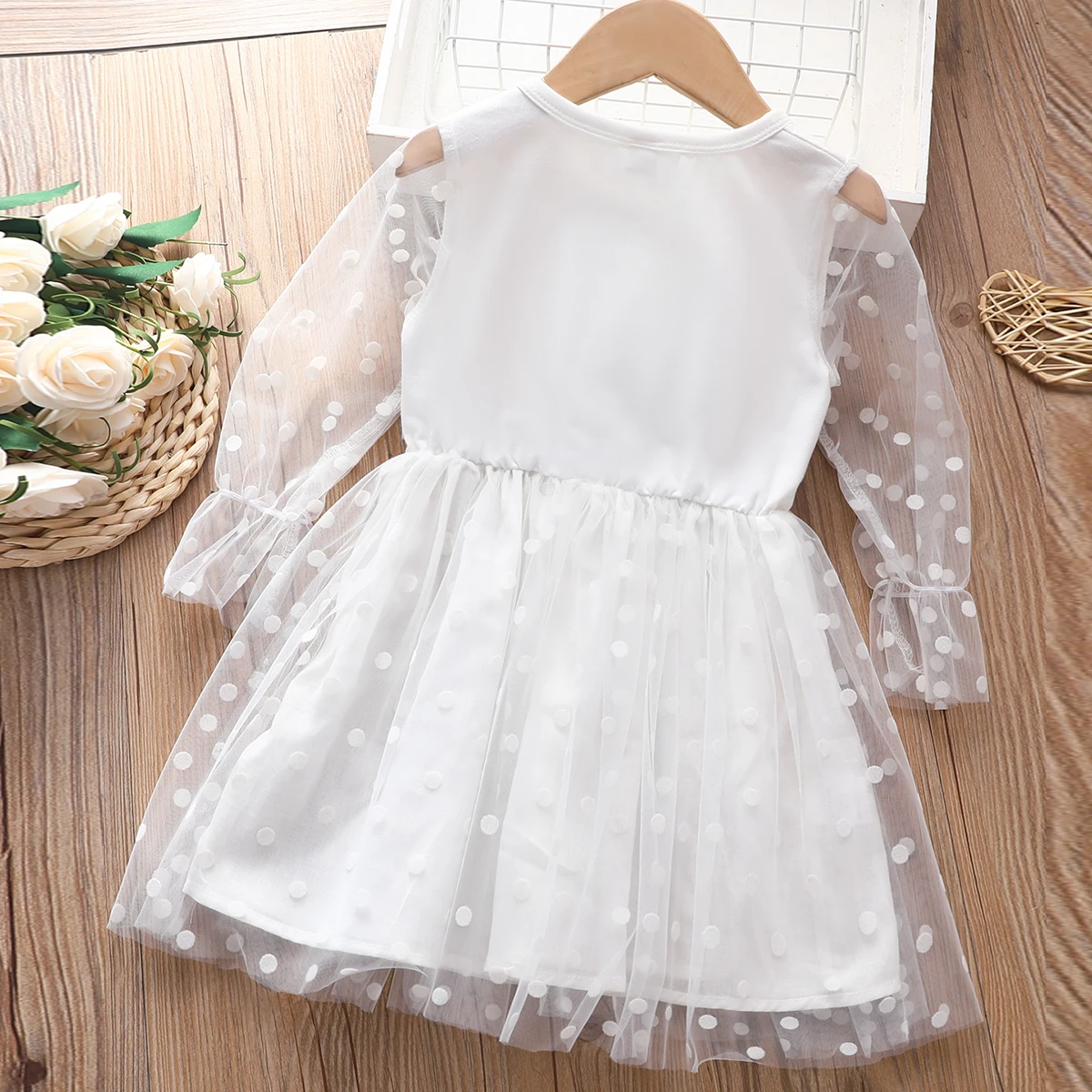Детское кружевное платье-пачка в горошек, с длинным рукавом