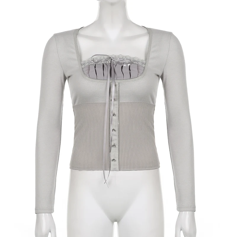 Dourbesty Kawaii кружевные футболки с бантом с оборками 90-х винтаж...
