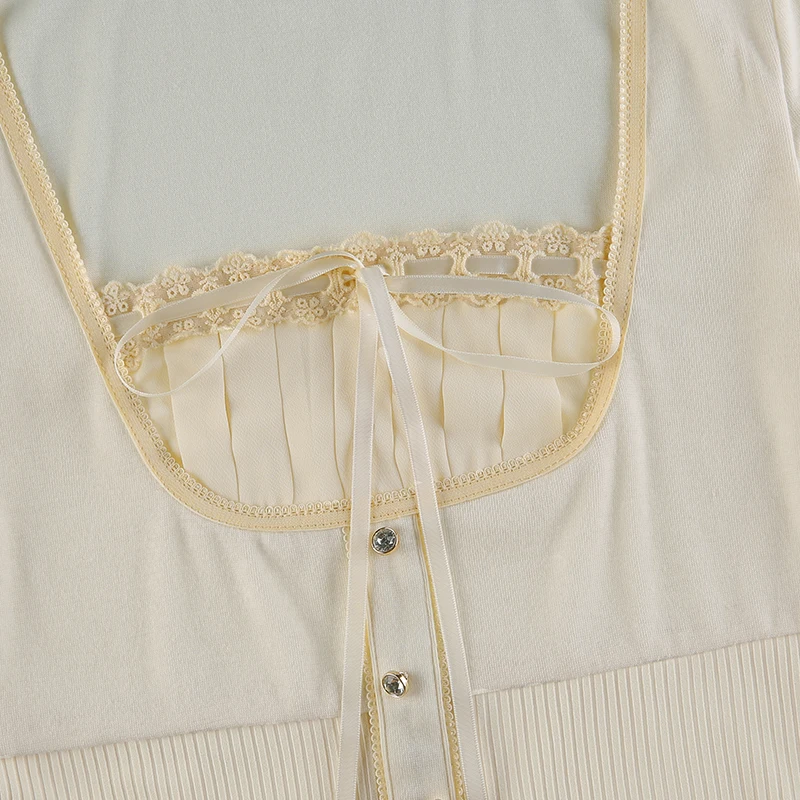 Женская Винтажная футболка с кружевом и бантом, с квадратным вырезом