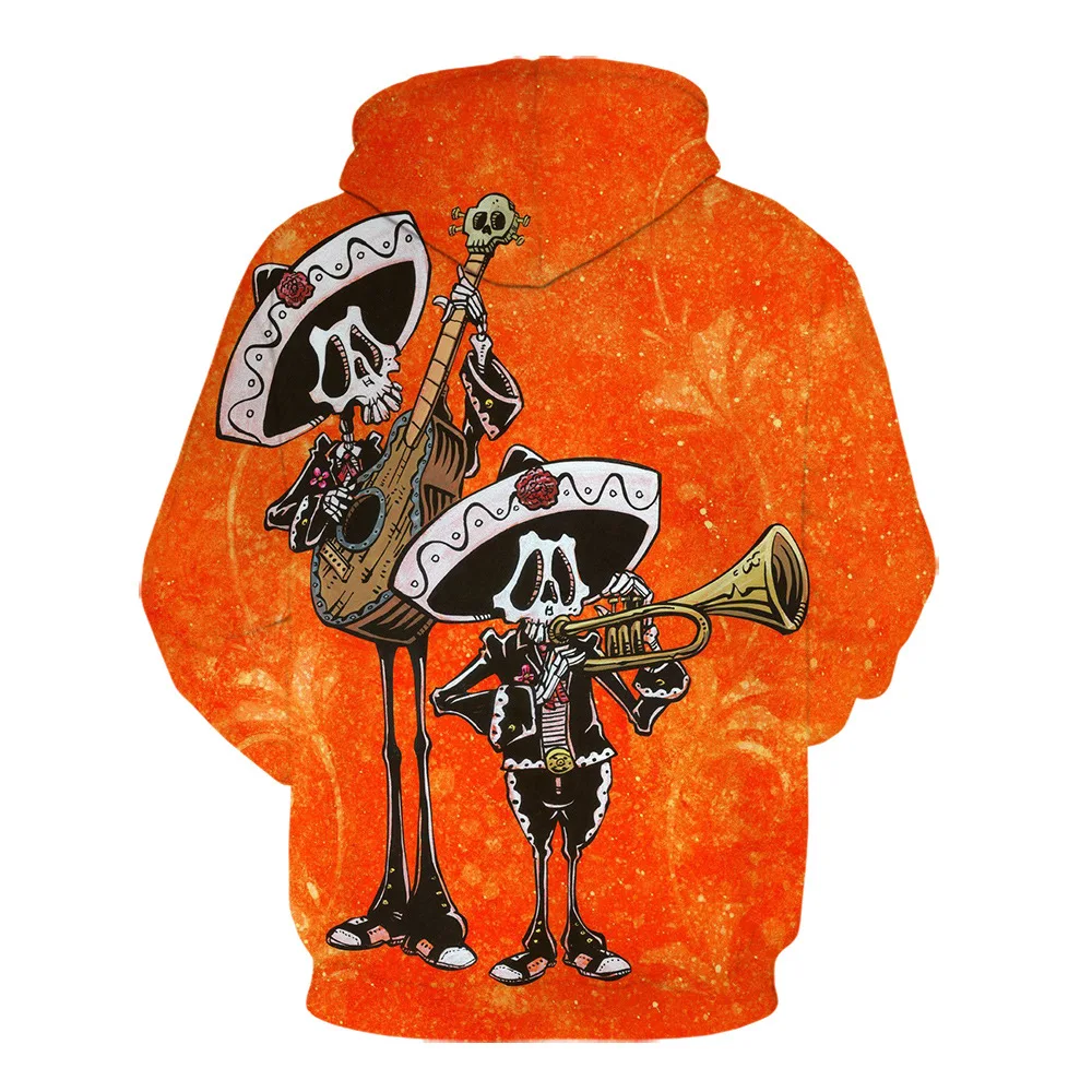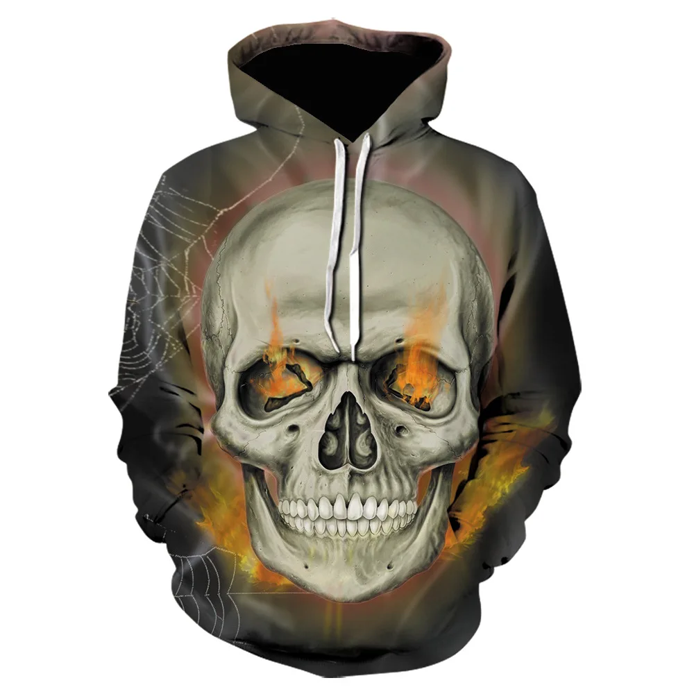 Мужская толстовка со шнуровкой и капюшоном, свободная толстовка с длинными рукавами, пуловер с принтом скелета зомби, куртка в стиле хип-хоп, повседневная одежда для весны и осени