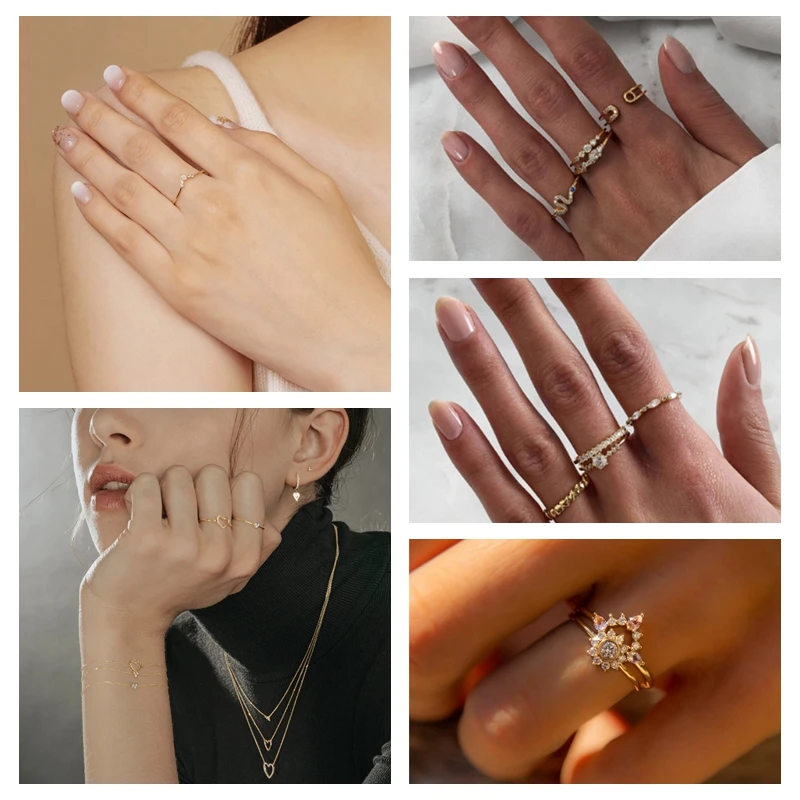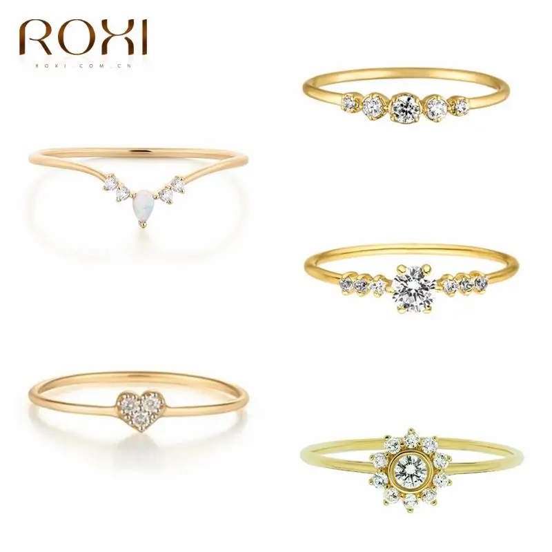 ROXI Ins кристаллы, золотые кольца для женщин, рождественские кольца, ювелирные изделия, серебряное богемное кольцо на палец, сердце, круглые цветы, кольца