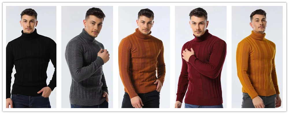 Мужской свитер с высоким воротником, облегающие пуловеры, Повседневные базовые однотонные Черные Полосатые новые зимние модные свитеры, сохраняющий тепло джемпер для мужчин
