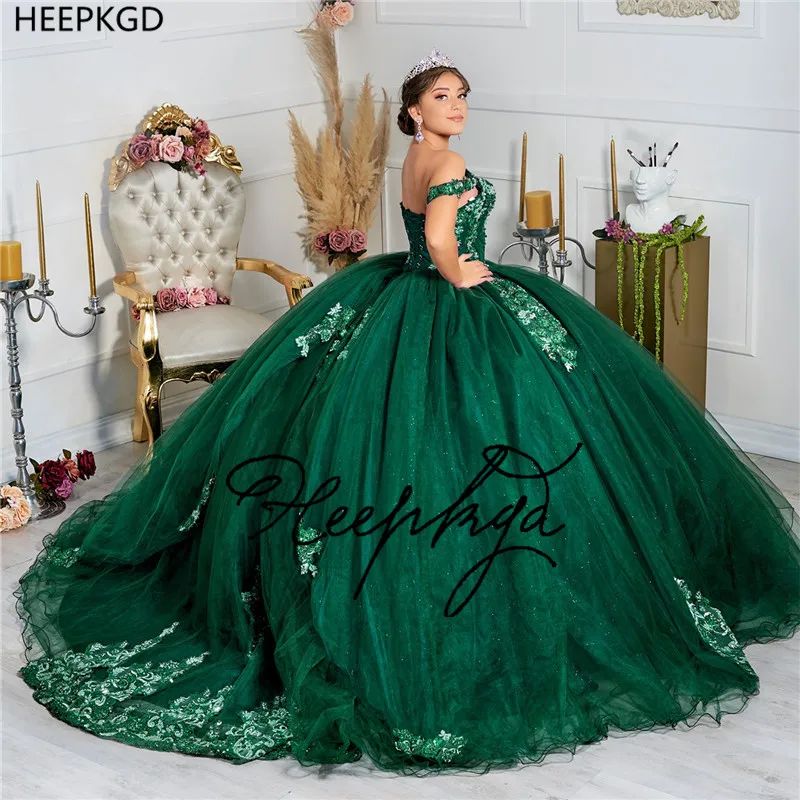 Изысканное бальное платье изумрудно-зеленое платье для Quinceanera шикарный корсет с бусинами и аппликацией оранжевое Пышное милое праздничное платье для 16 девушек