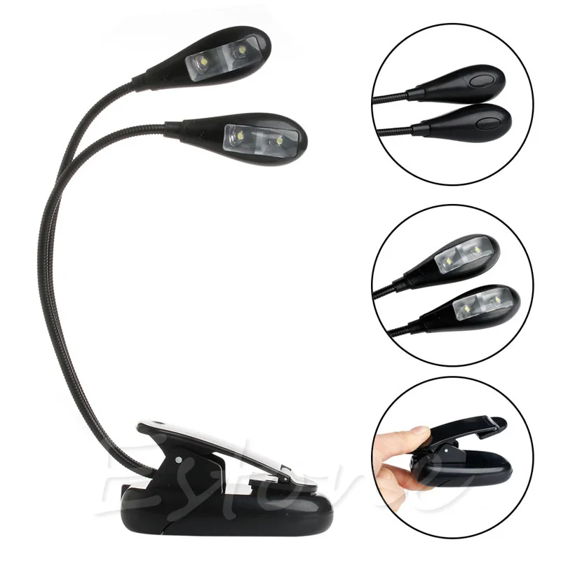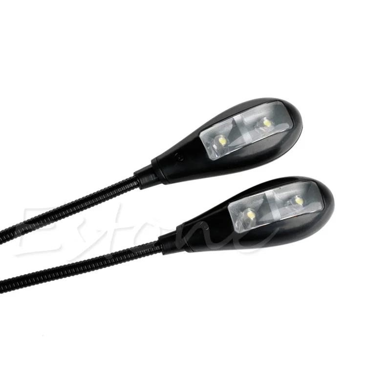 2 двойных гибких держателя, 4 светодиодный лампы с клипсой для пианино, музыкальная подставка, светильник для чтения книг