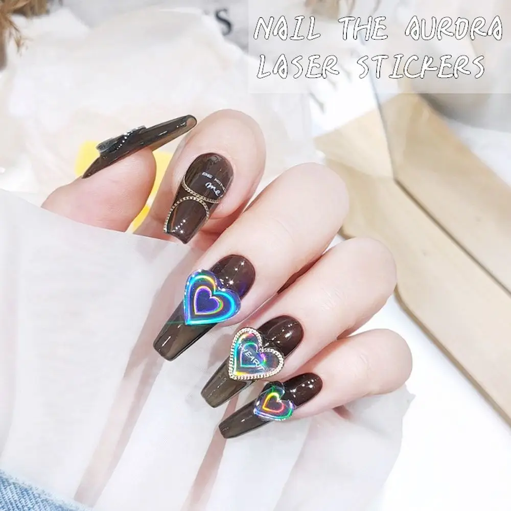 1 Набор наклеек для дизайна ногтей, романтическая супервспышка, фотовспышка, слайдер для лазерной лампы, наклейка для ногтей в форме сердца
