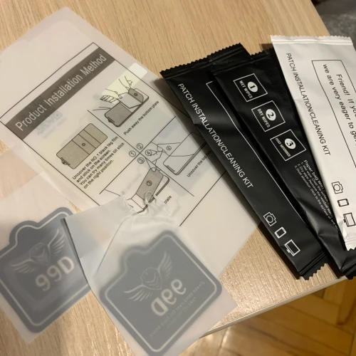 Доставка две недели. В комплект входит кроме самой плёнки - влажная салфетка, сухая тряпочка, и стикеры от пыли. Плёнка легла хорошо, но по каемке не плотно. Пока что это не мешает, но со временем, думаю, туда налипнет всякой грязи и пыли. Посмотрим. Это не критично, так как плёнки две штуки и потом поменяю. Просто интересно, на сколько хватит одной. Отпечатки пальцев распознаются и вообще тачскрин работает без проблем. Рекомендую.