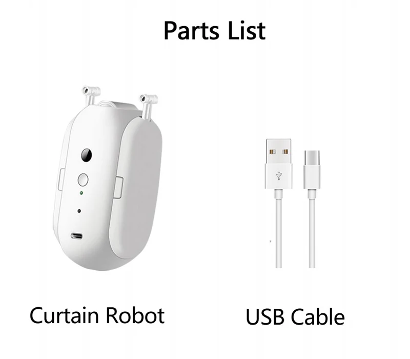 Одиночный занавес: Интеллектуальный занавес робот * 1, кабель для передачи данных * 1, руководство по эксплуатации * 1Двойные шторы: Интеллектуальный робот для штор * 2, кабель для передачи данных * 2, руководство по эксплуатации * 1