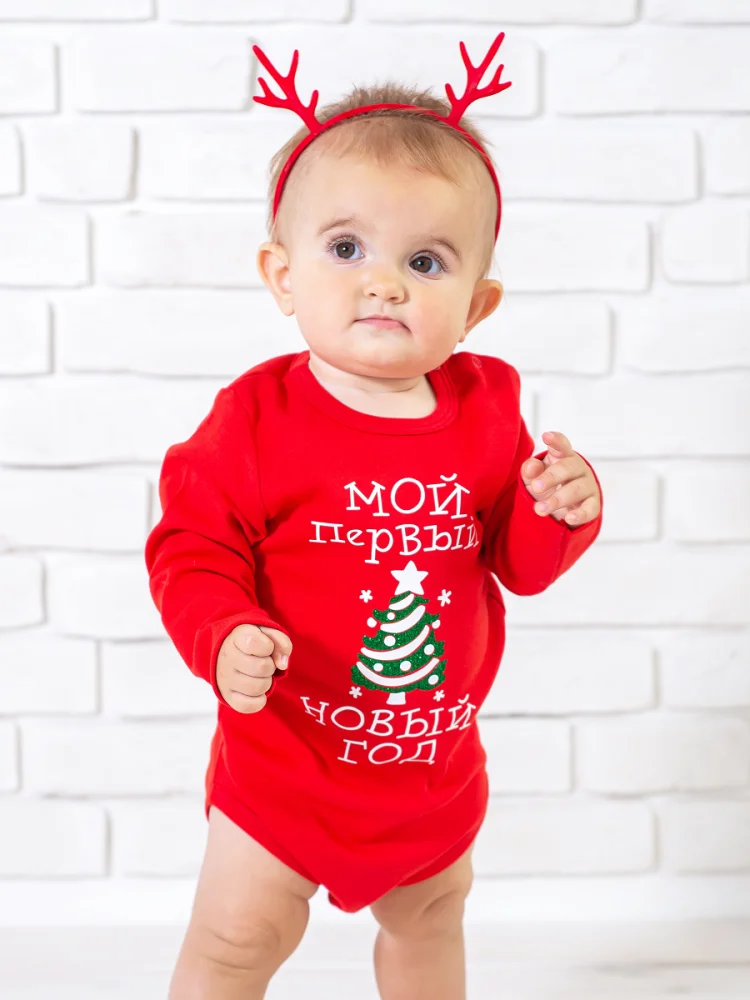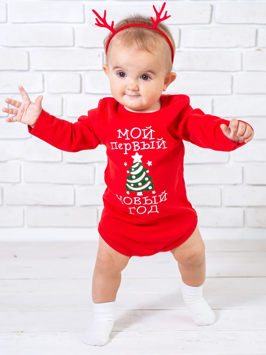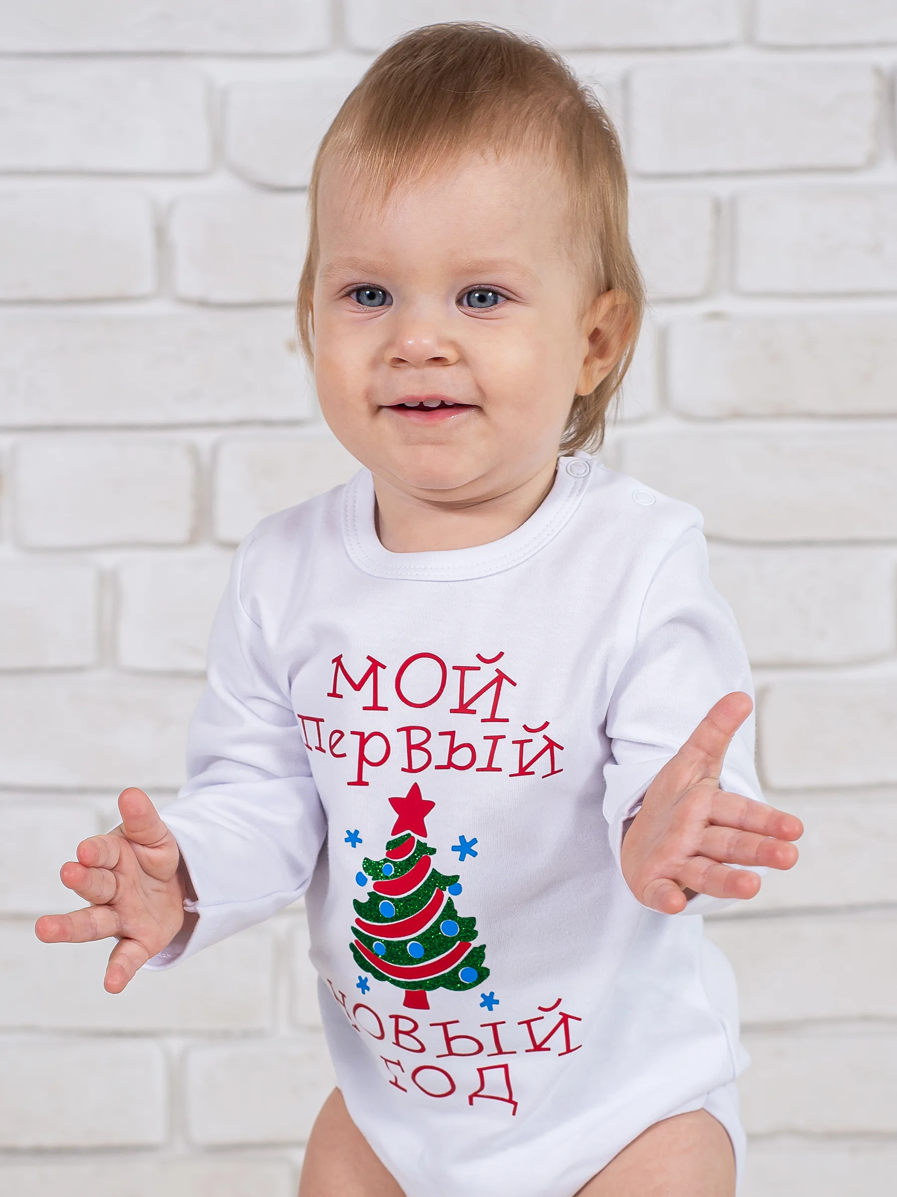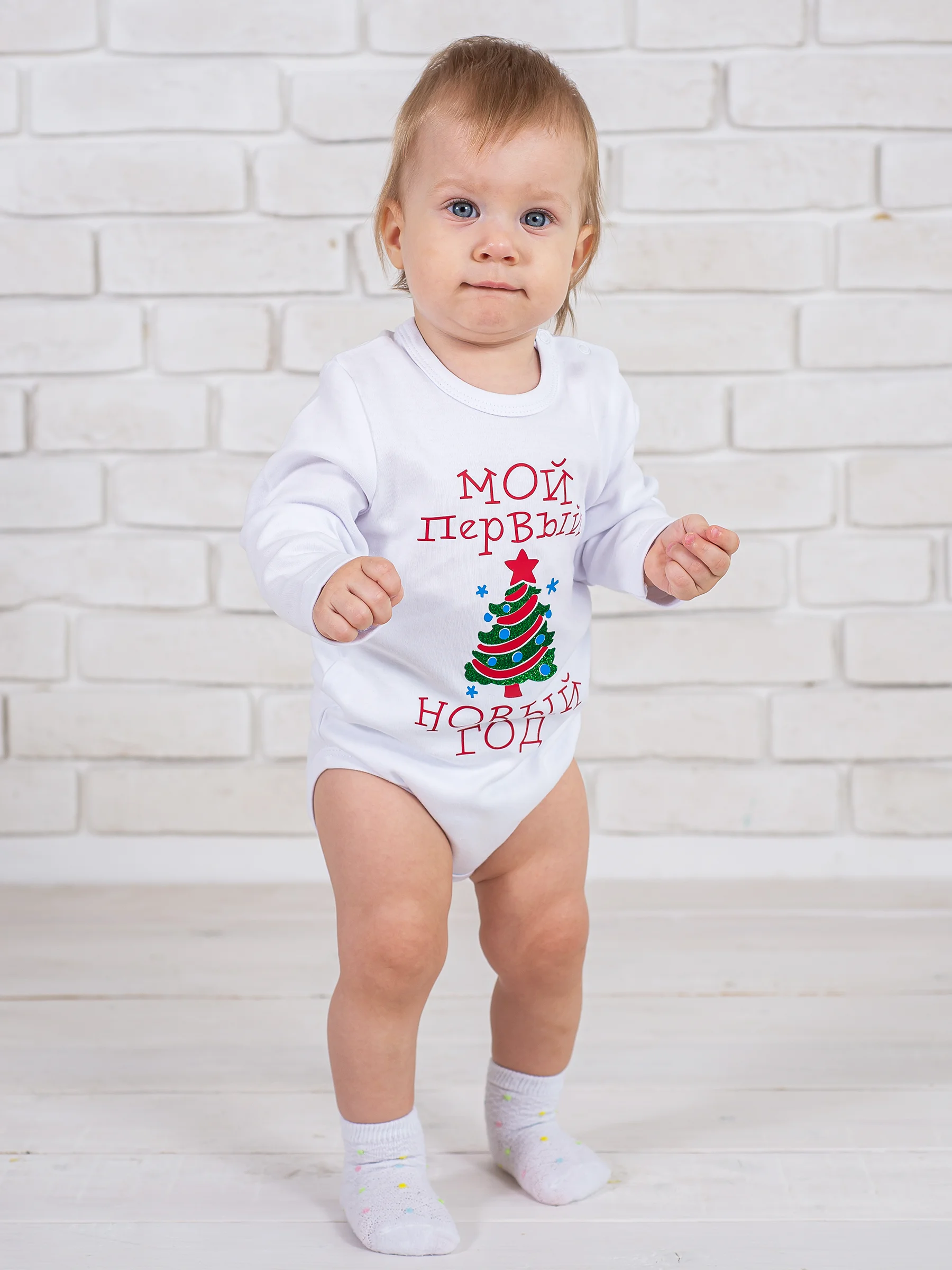 Боди с длинным рукавом "Мой первый Новый Год" с блестками. Валерия Мура