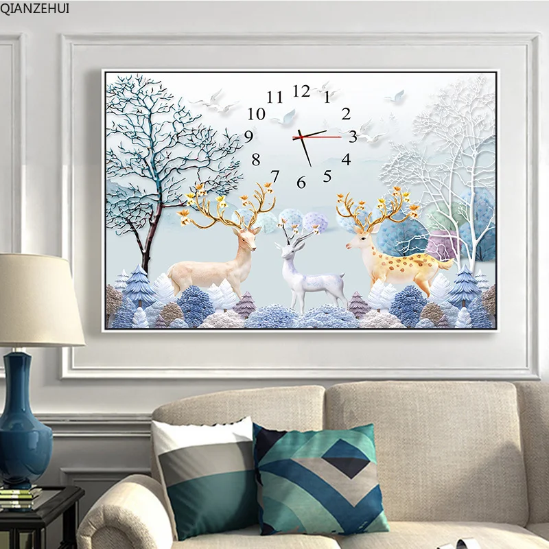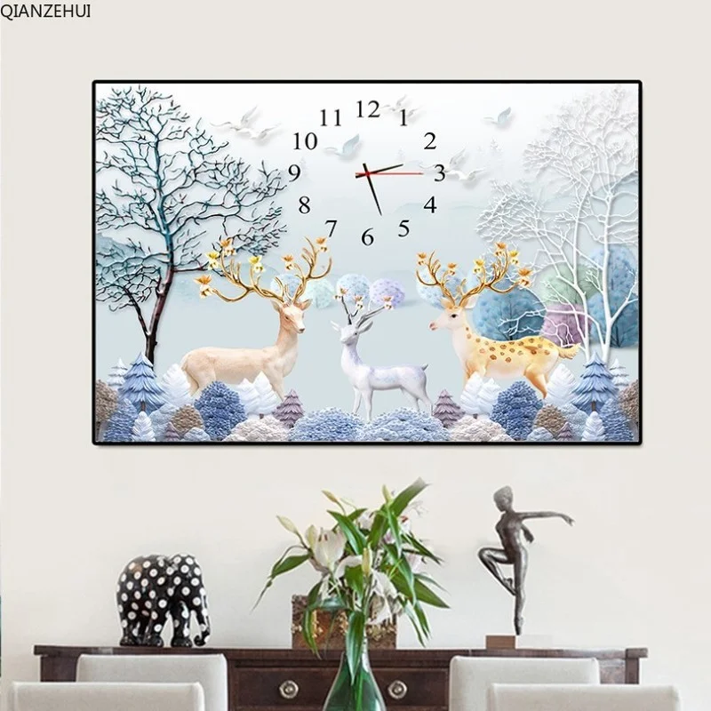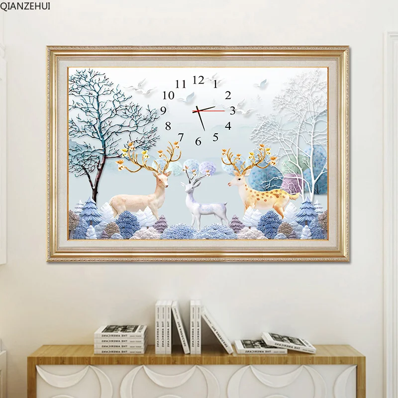 QIANZEHUI, алмазная вышивка 5D своими руками, круглые алмазные часы с оленем, алмазная живопись 5D, вышивка крестиком