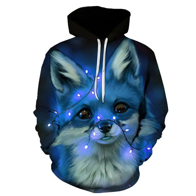 Толстовка Мужскаяженская с 3D-принтом волка, Свитшот оверсайз с кап...