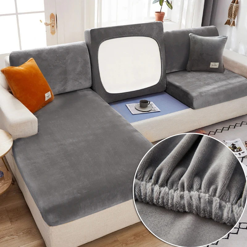 Зимний Бархатный Чехол для дивана, чехол для подушки, толстый жаккардовый однотонный мягкий растягивающийся чехол для дивана, защитная мебельная мебель для гостиной