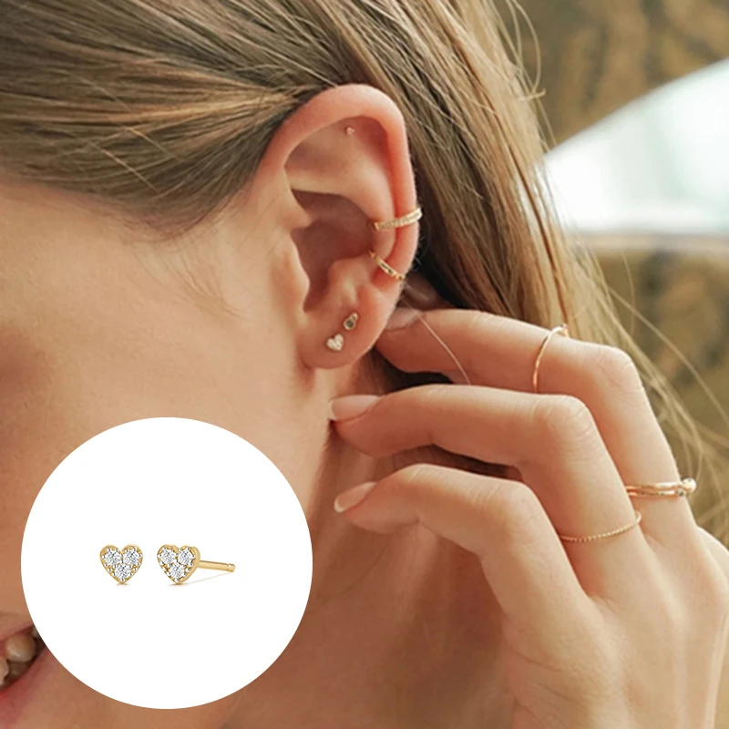 Серьги-гвоздики с цирконом, серебряное покрытие 925 пробы, 64 вида