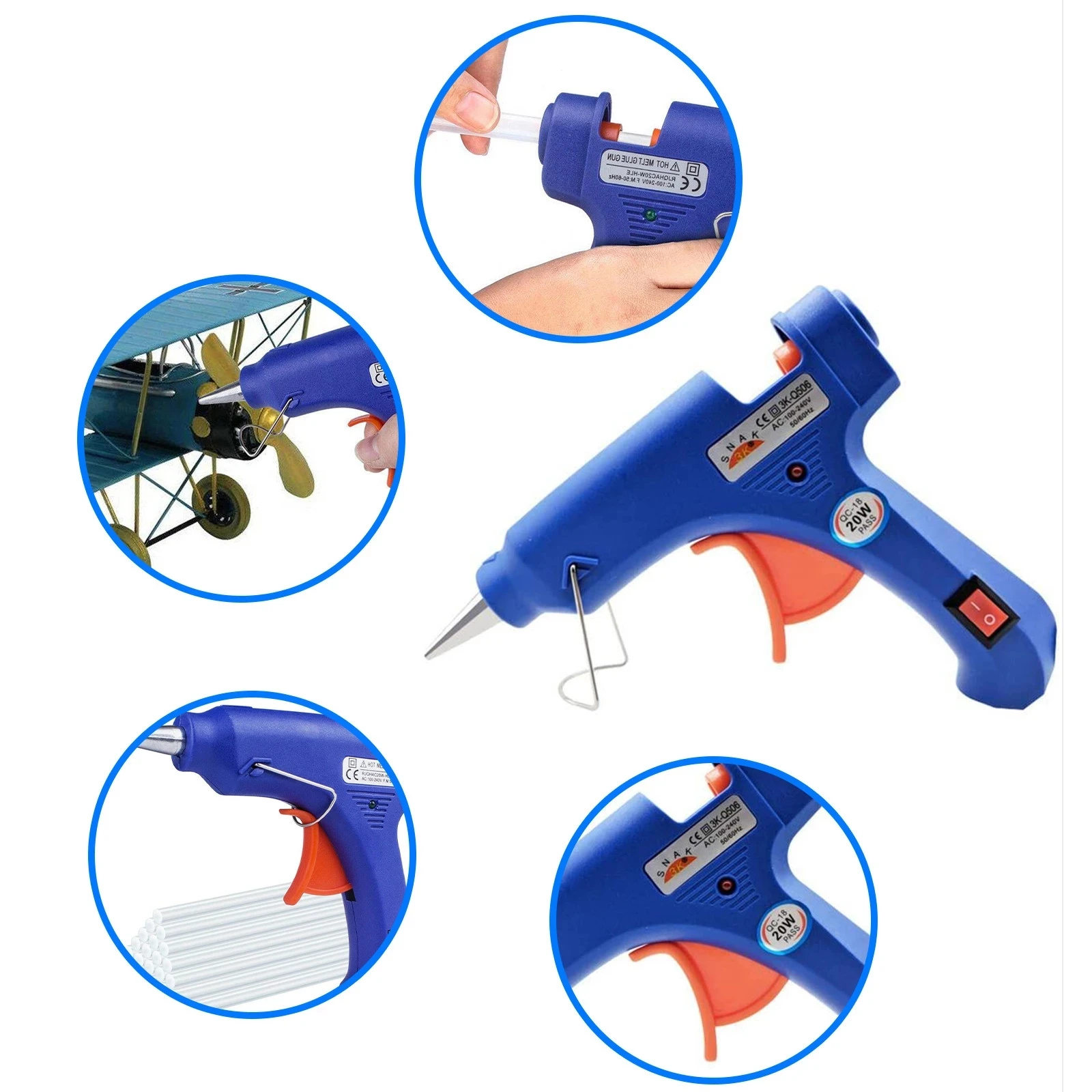 Термоклеевой пистолет 20 Вт с 7 мм клеевыми стержнями, клеевой пист...