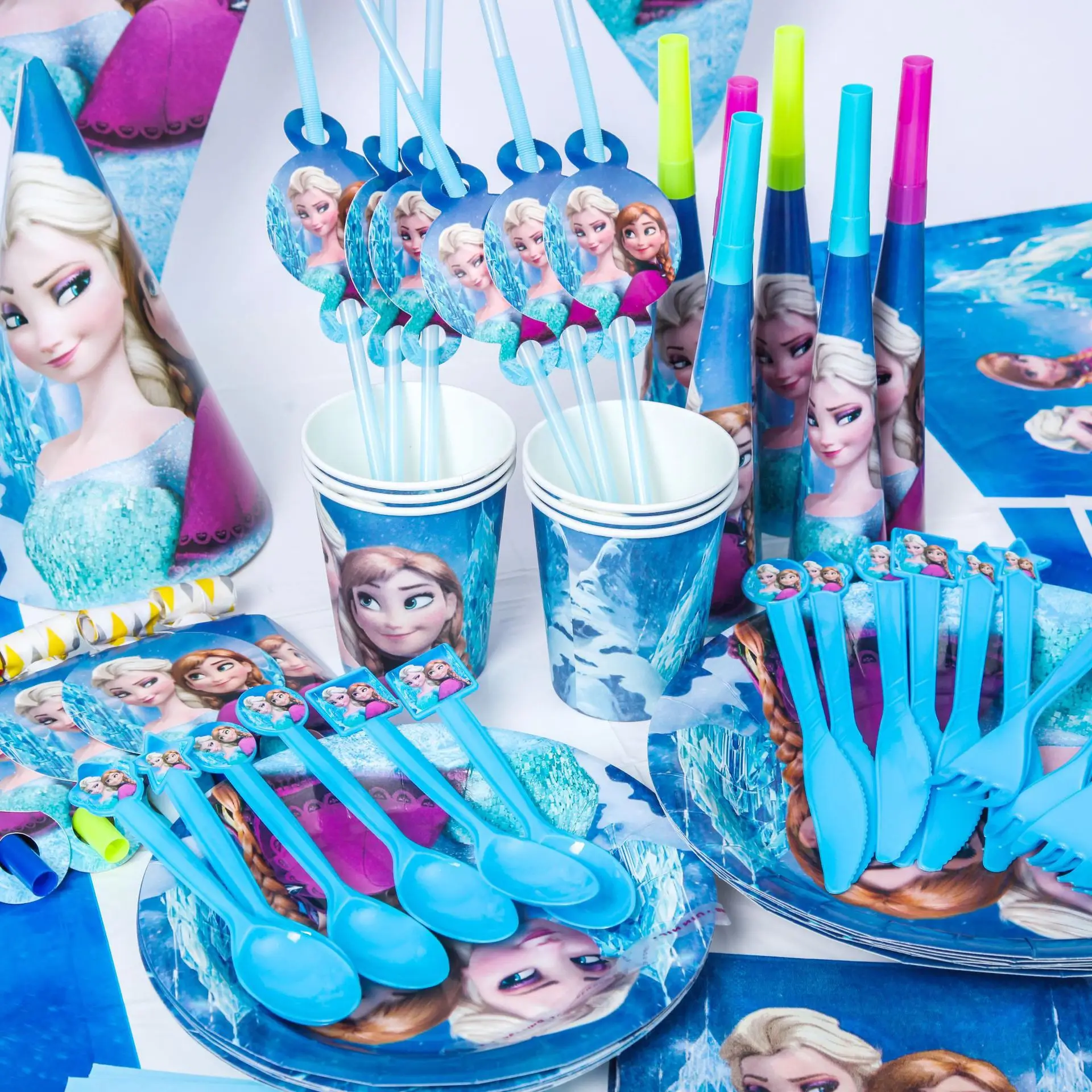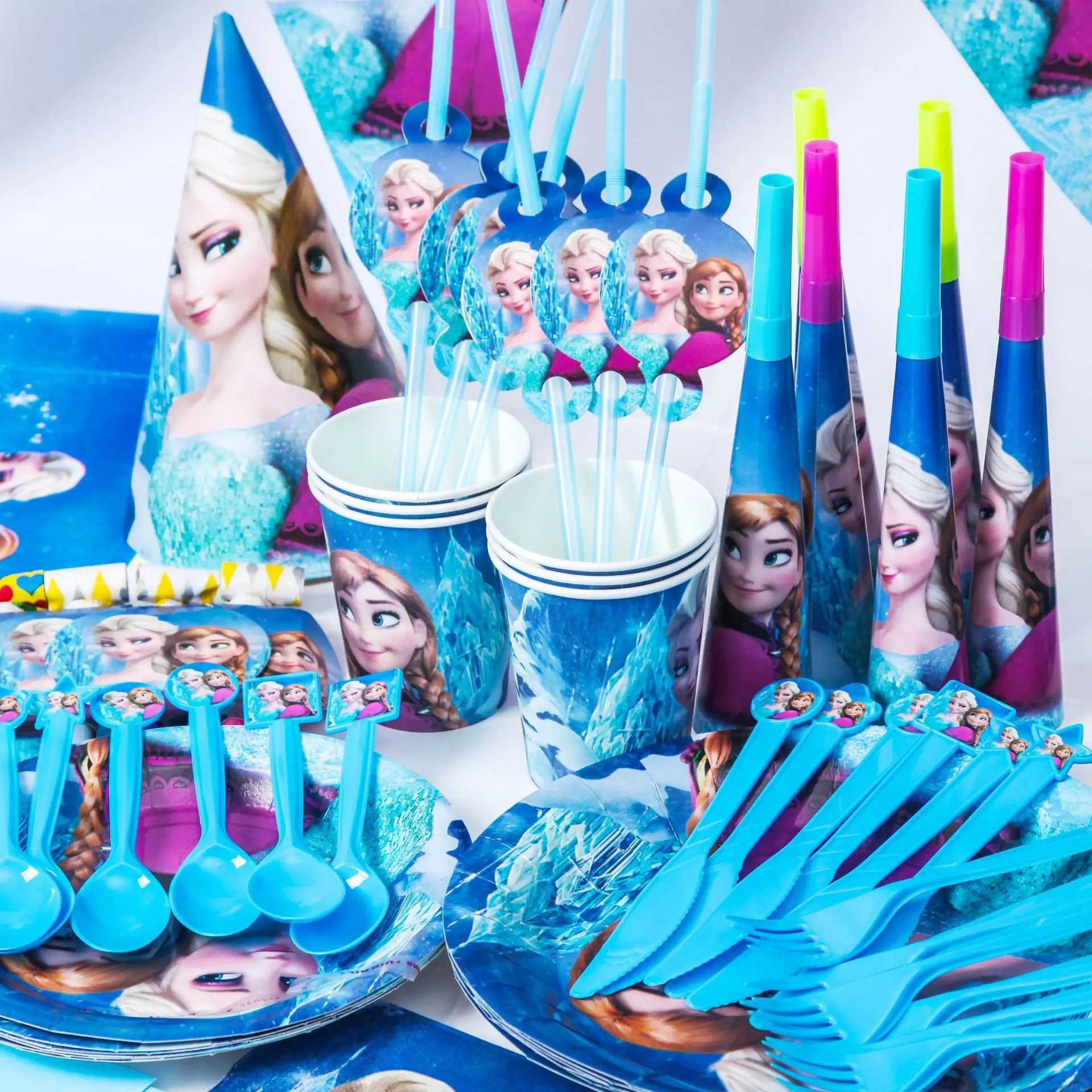 Наборы одноразовых столовых приборов с голубыми мультяшными персонажами для вечерние Холодное сердце, бумажные тарелки для детей, товары для дня рождения, декор вечерние НКИ