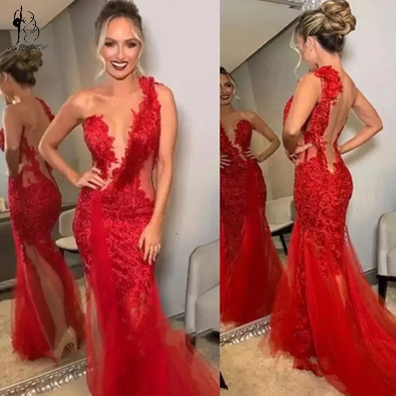 Женское кружевное вечернее платье-русалка без рукавов с V-образным вырезом