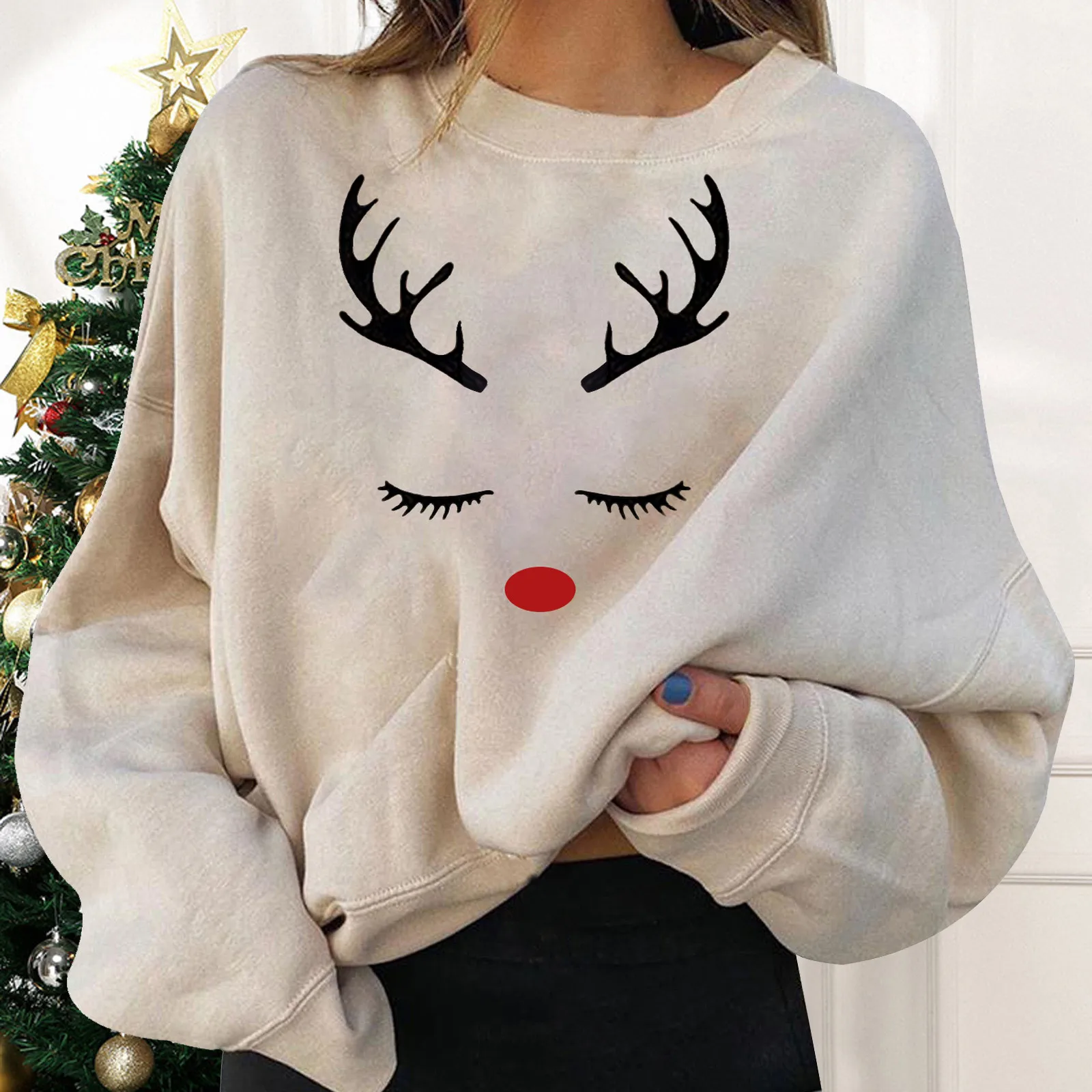 Женская мода Рождество 3D принт вечерние с длинным рукавом пуловер Толстовка
