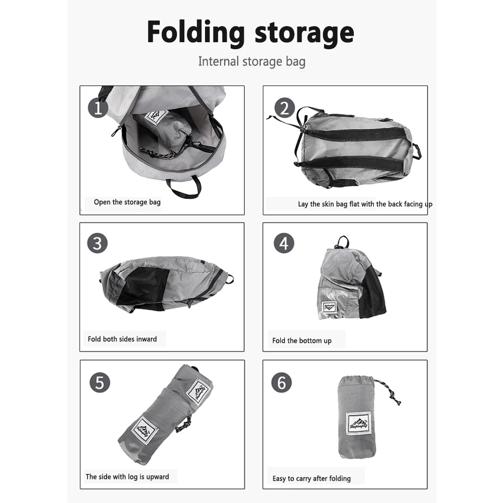 20л большой емкости водонепроницаемый складной Велоспорт рюкзаки Сверхлегкий Открытый путешествия Туризм рюкзак сумкаОсобенности:1. Портативный: сверхлегкий рюкзак можно сложить во внутренний карман и хранить в любом месте, экономя место, легкий и удобный для переноски.2. Водонепроницаемый и прочный: легкий складной рюкзак изготовлен из водонепроницаемого и износостойкого нейлона. Он прочный и использует двустороннюю водонепроницаемую молнию для эффективной защиты предметов от промокания. Режим крепления: молния, застежка.3. Многофункциональный: ультра-легкие рюкзаки очень подходят для ежедневных коротких поездок, школы, походов, спорта, кемпинга и покупок, чтобы обеспечить достаточно места для людей разного возраста, А также может использоваться в качестве небольших подарков для семьи и друзей.4. Уникальный дизайн: небольшой рюкзак с дышащей сеткой и губчатыми накладками для мужчин и женщин может помочь снять давление на плечо, длину плечевых ремней можно регулировать, И нагрудные ремни с кнопками-сентинелями помогут вам защитить рюкзак.5. Большая Вместимость: с 1 основной сумкой, 1 передней сумкой и 2 сетчатыми боковыми сумками, вместительный складной дорожный рюкзак может легко хранить все предметы, И Основная сумка может хранить одежду и все виды оборудования. Другой карман очень подходит для быстрого доступа к денежным средствам, кредитным картам, паспортам и другим товарам, а два больших боковых сетчатых мешка могут вмещать бутылки с водой или зонтики.Спецификация:Название: Складная Походная сумкаМатериал: водоотталкивающий полиэстерЦвет: A: светло-серый, B: зеленый, C: черный, D: темно-синий, E: голубой, F: розово-красный, G: оранжевый, H: темно-синийРазмер: 41*24*16 см/16,14*9,45 * 6.3in (до хранения), 12*7 см/4,72 * 2.76in (после хранения)Емкость: 20LПримечание:В связи с различиями мониторов и эффектами освещения реальный цвет товара может немного отличаться от цвета на фотографиях. Спасибо!Замеры сделаны вручную, поэтому возможны отклонения на 1-2 см.
